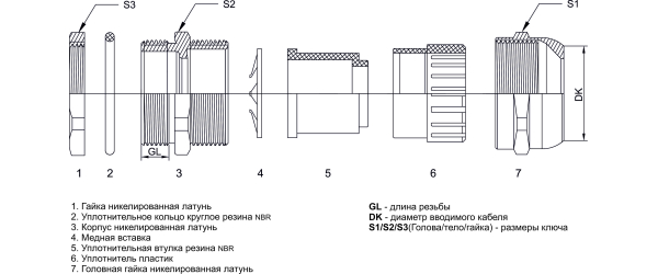 Кабельный ввод из никелированной латуни с заземлением кабеля