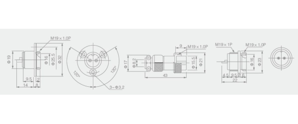 DF20 вилка приборная с круглым фланцем с 3 отверстиями